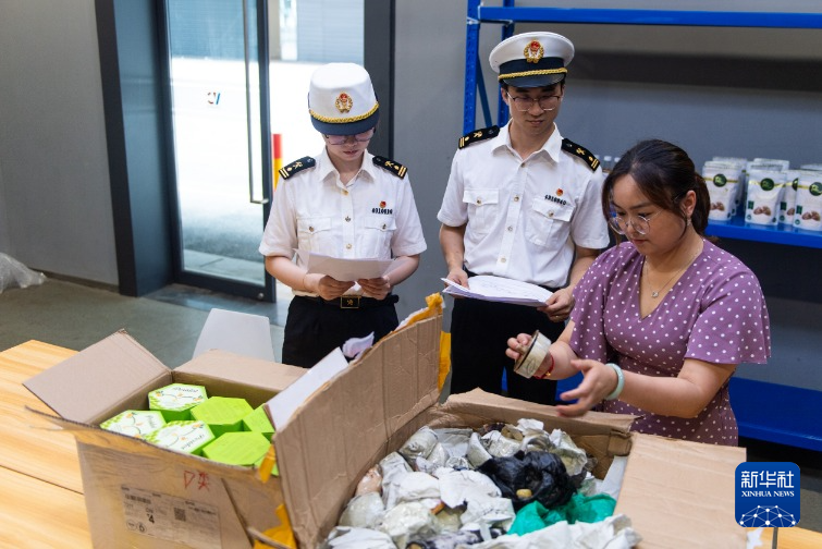6月19日,在长沙国际会展中心,长沙海关所属星沙海关关员在核对单货。