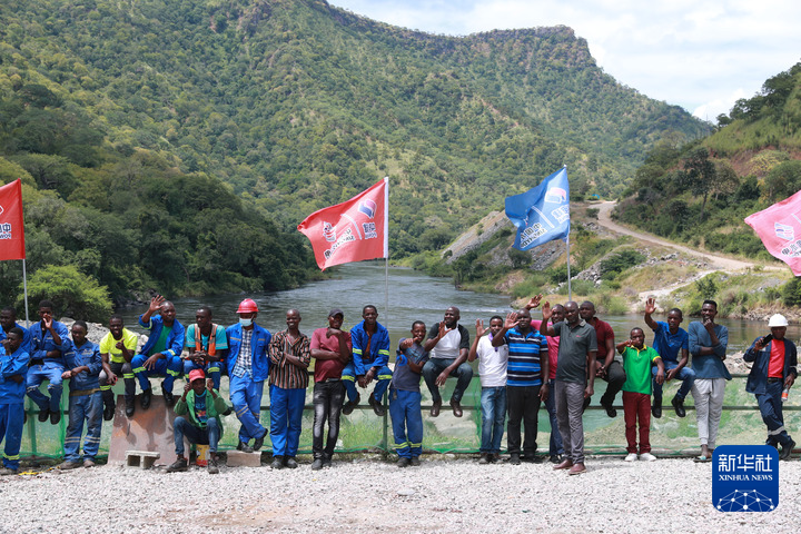 3月24日,在赞比亚南方省,中国电力建设集团有限公司的赞比亚员工参加下凯富峡水电站5号机组发电仪式。 新华社记者 彭立军 摄