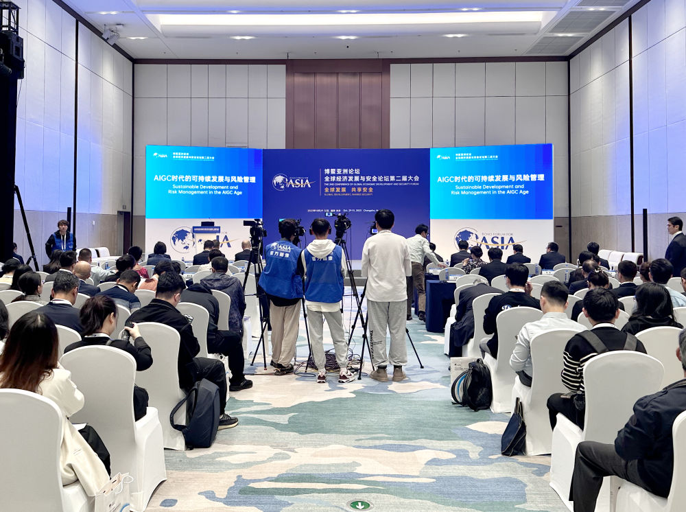 博鳌亚洲论坛全球经济发展与安全论坛第二届大会“AIGC时代的可持续发展与风险管理”分论坛现场。新华社记者谢奔 摄