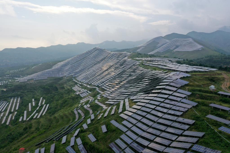 7月12日,山西省芮城县学张乡光伏电站(无人机照片)。新华社记者 詹彦 摄