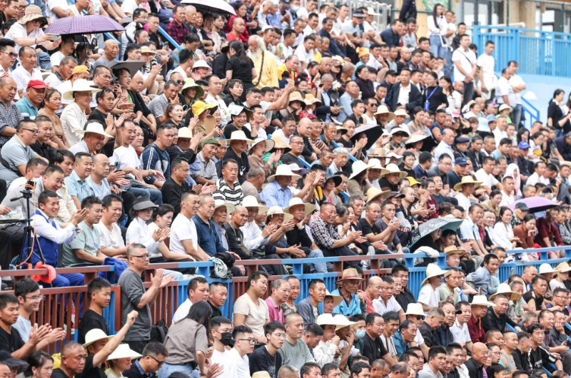 10月25日,全国和美乡村篮球大赛(村BA)总决赛在贵州省台江县台盘村开赛,观众在看台上观看比赛。新华社记者 欧东衢 摄