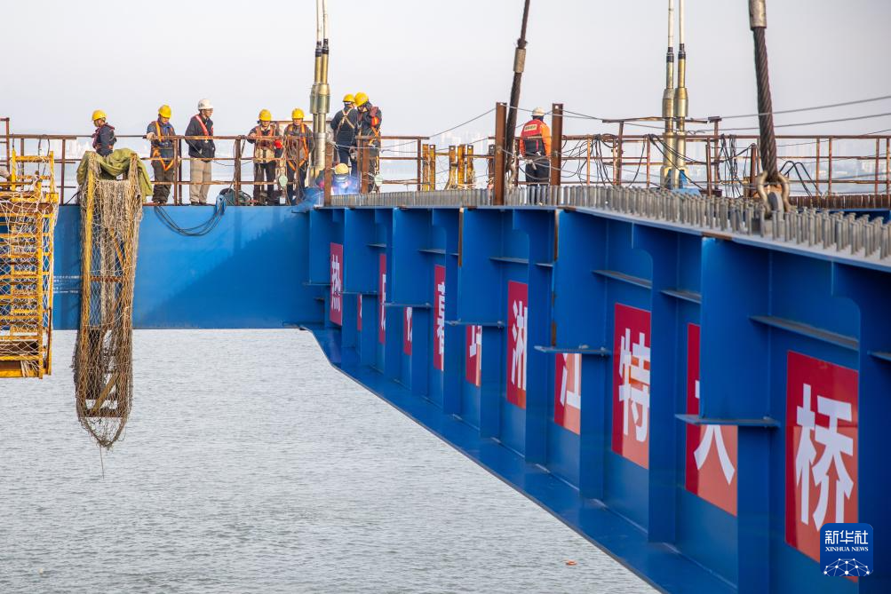11月26日,工人在长沙暮坪湘江特大桥合龙施工现场作业。新华社记者 谢樱 摄pagebreak