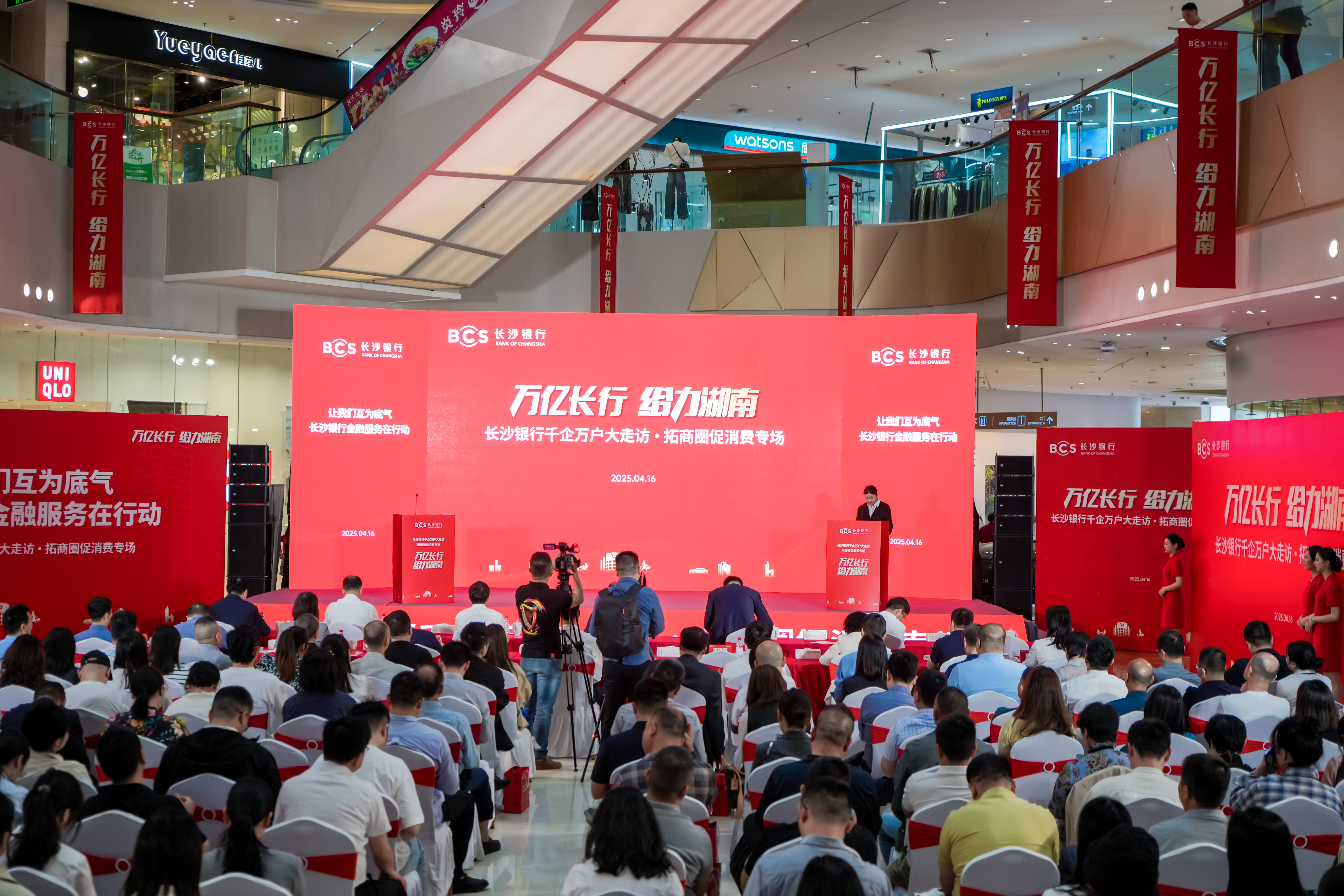 4月16日,“万亿长行 给力湖南”长沙银行千企万户大走访·拓商圈促消费专场活动举行。活动现场,发布金融支持消费系列举措,以高质量金融供给助力扩大内需、消费升级,为激活消费市场注入金融动能。