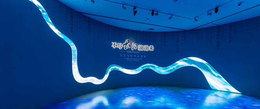 展览前序为“诗咏长江”,选取诗词名句,营造长江浩丽图景;后记为“史诗行进”,节录近现代以来的历史事件,展现走向未来的意境。观众进入展厅即可“沿江而行”,感受长江流域文明演进,览阅万里江河文化盛景。