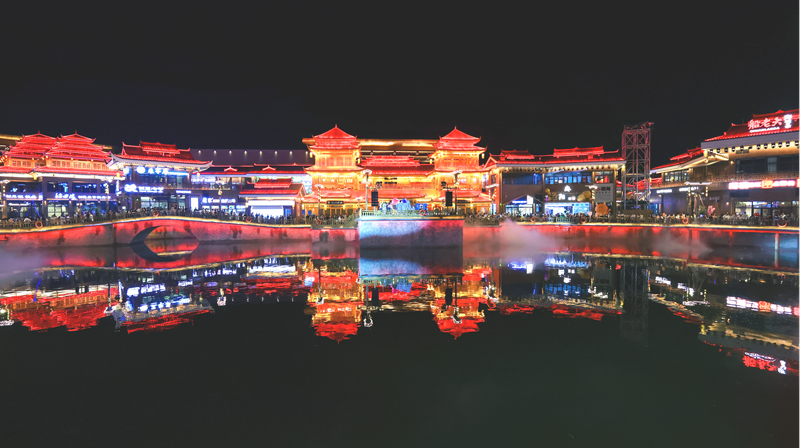 9月17日夜幕降临,湖南省第五届旅游发展大会重点观摩项目之一的榆树湾文旅商综合体街面人头攒动。在一排排极具特色的建筑群里,“黄金楼”在灯光映照下通体金灿,引无数游人驻足参观,成为该地头号打卡点。