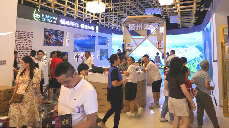 “我们展馆既有文旅项目介绍,又有沅陵碣滩茶、沅陵酱酒、晒兰等特产和辰州剪纸等非遗展示。”沅陵辰发文旅工作人员陈小菊介绍。