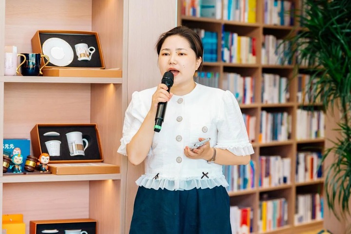长沙法律书店老板冼荣丽在一场活动中发言。(长沙法律书店供图)