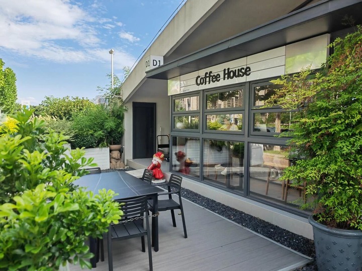 书店现址刻意避开了闹市区,距浏阳河不过百米。堤外,河水奔流不息;堤内,芳草绿树环绕。书店周围环境幽静,空气清新,晨间有很多人在河边的绿道锻炼。书店建筑设计极具现代感,外立面简洁大气,大面积的玻璃窗让阳光洒进店内,营造出明亮且开放的氛围。店外有一个小花园,摆放着桌椅,天气好的时候,顾客会在这里边喝咖啡边读书。