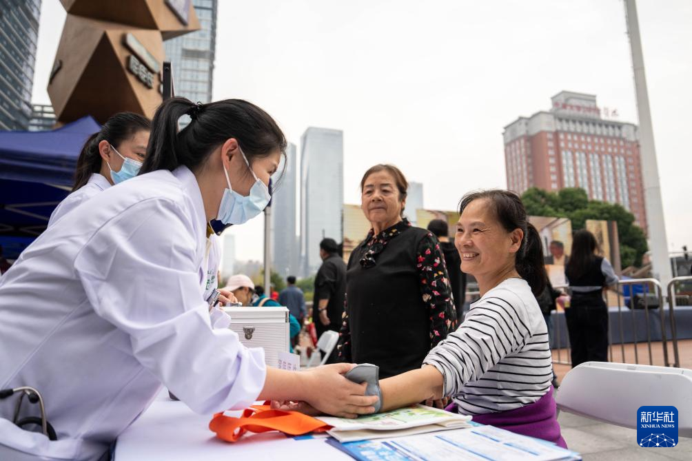 10月29日,在长沙市开福区东风路街道东风大舞台旁,市民参加义诊活动。新华社记者 陈思汗 摄pagebreak