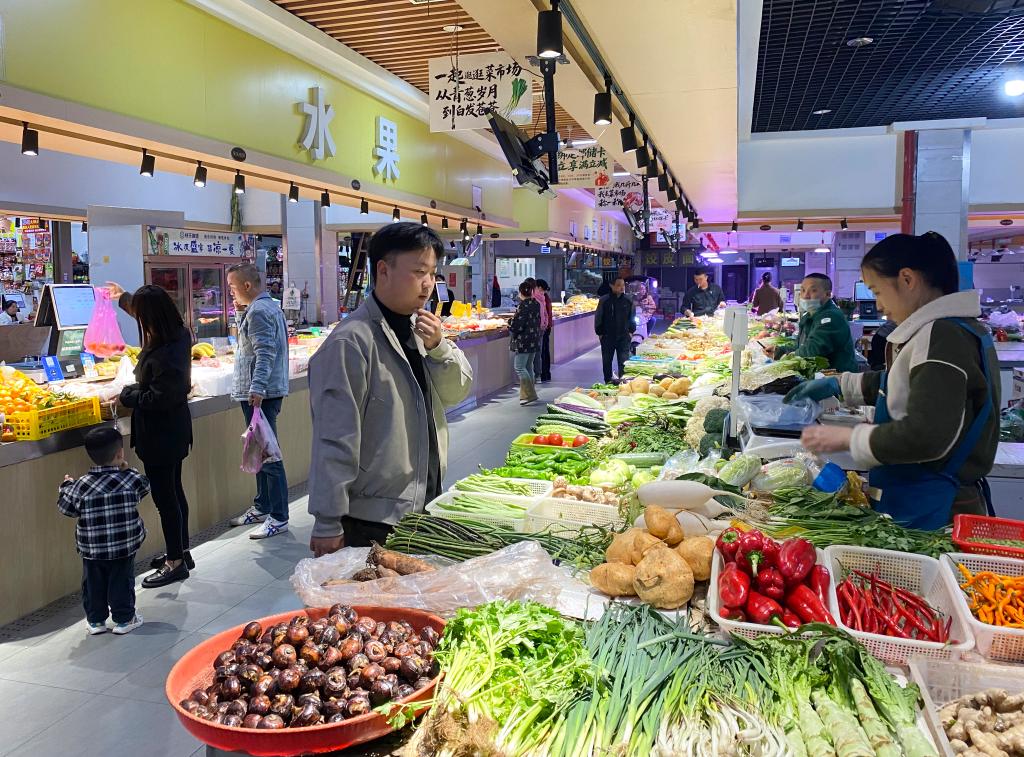 市民在湖南衡阳市蒸水AI智慧农贸市场买菜(11月11日摄)。新华社记者 明星 摄