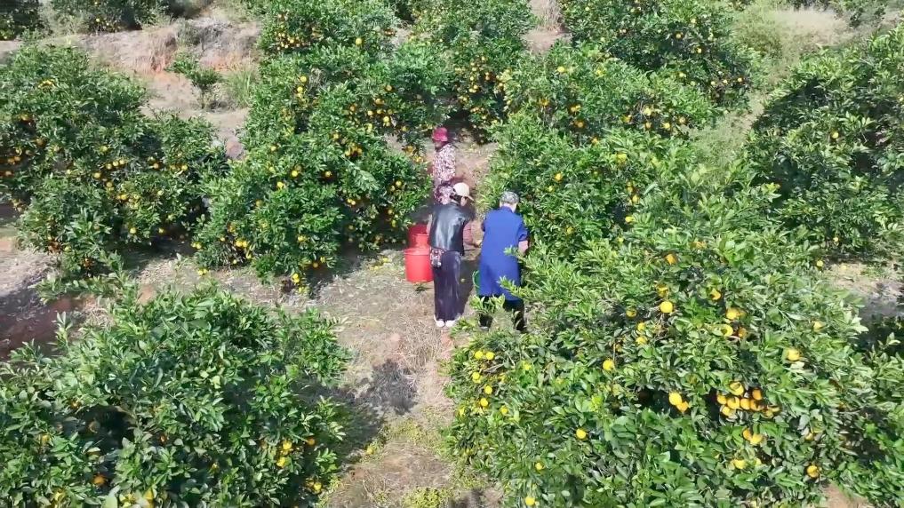 当前,湖南省永兴县15.5万亩冰糖橙进入采摘季。在永兴县湘阴渡街道山冲村,1000多亩冰糖橙树遍布山野。