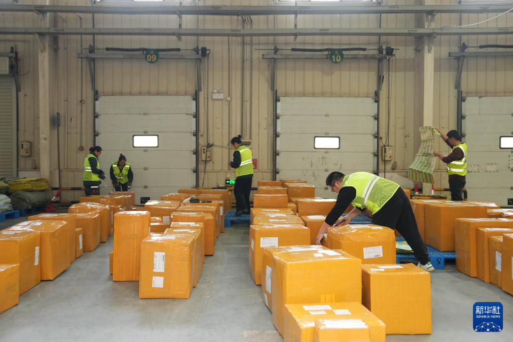 12月10日,工作人员在长沙国际邮件互换局分拣、分发出口包裹。新华社记者 薛宇舸 摄pagebreak