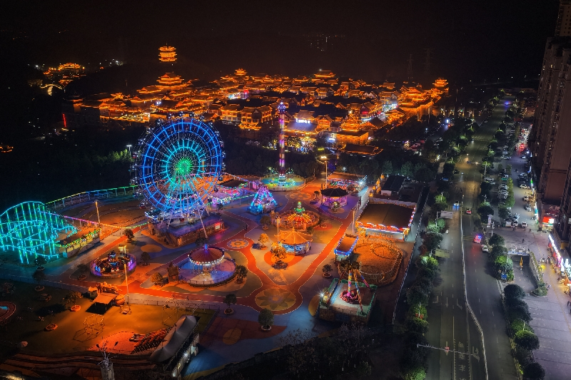 霓虹闪烁的桂阳文化园商业区。(常凯摄)