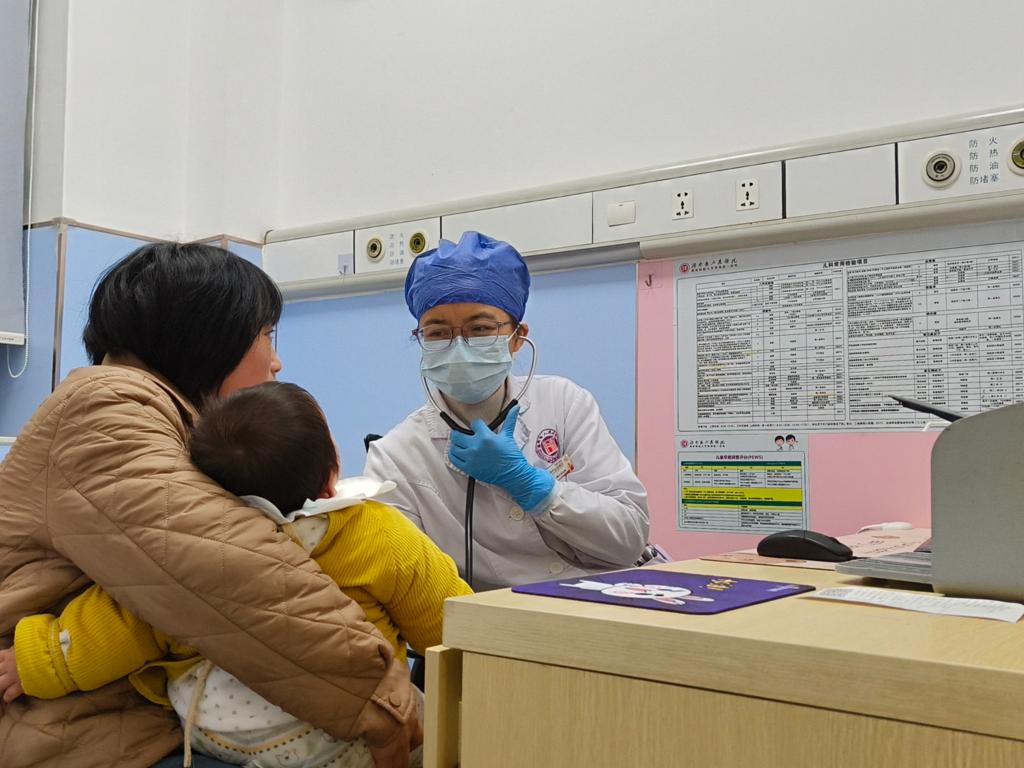1月1日,湖南省人民医院一名儿科医生为呼吸道疾病患儿进行诊疗。新华社发