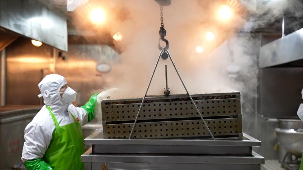 在生产车间,传统与现代完美融合。第三代传承人坚守“24味五香大料、8小时老卤浸润”的古法,同时引入智能生产线。他们针对年轻人研发的低盐、藤椒等创新口味的产品,推出后仅用3个月,就占了门店销量的三成。