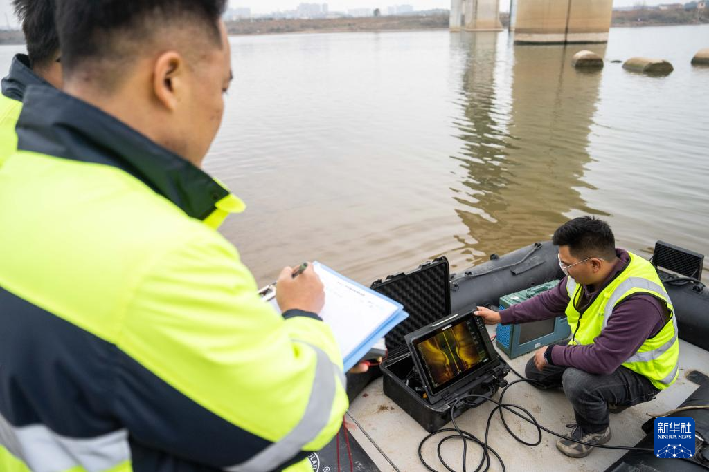 1月29日,在沪昆高铁湘江特大桥下,铁路工人操作水下机器人检测河床情况。新华社记者 陈思汗 摄pagebreak