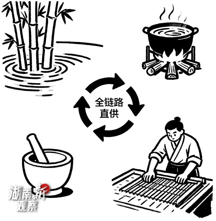 沤竹、踩料、抄纸、焙纸四步流程