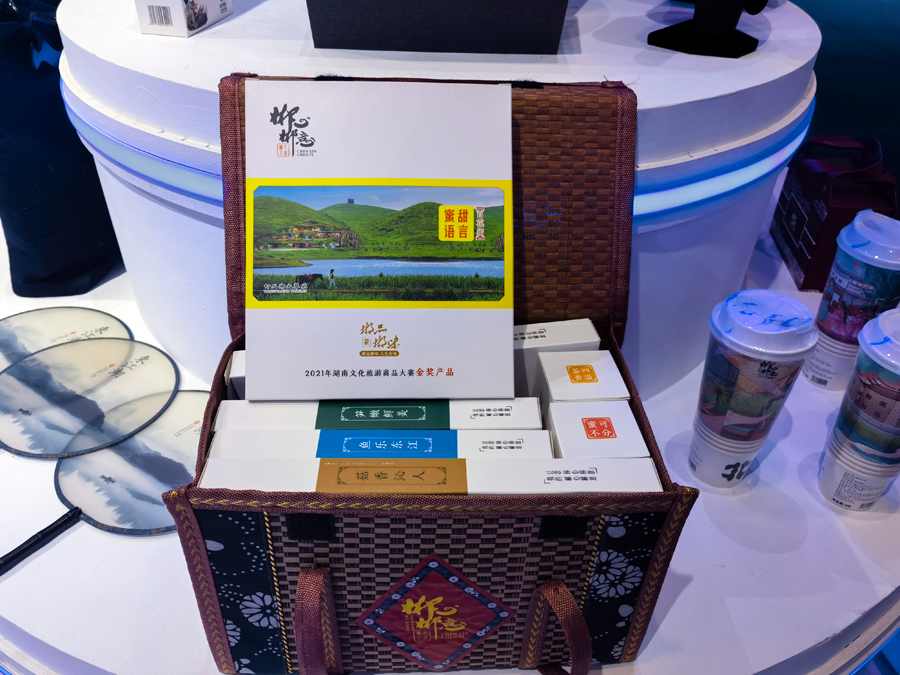 郴州展馆展出的“郴心郴意”文创产品。新华网刘扬摄