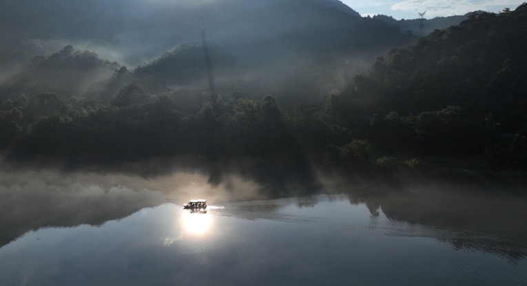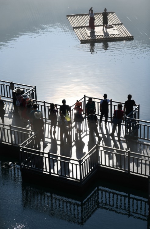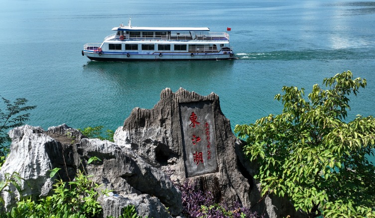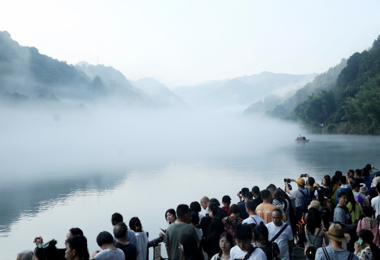 7月26日,游客在湖南省资兴市小东江游览。
