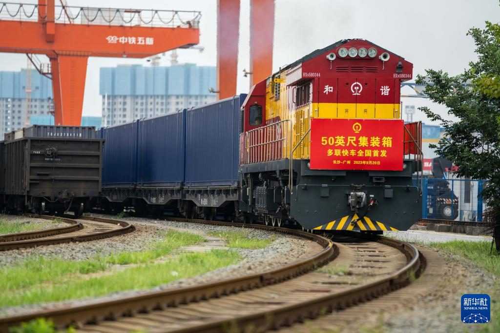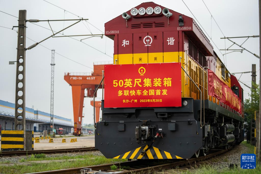 9月20日上午,一列装有50英尺集装箱的铁路多联快车从长沙北站开出,这标志着国内容积最大的民用集装箱正式上线发车。