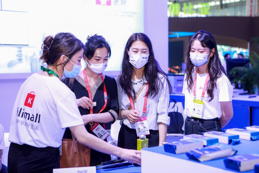2021年,在湖南长沙举办的第二届中国—非洲经贸博览会上,参会者在Kilimall展台参观选品。(受访者供图)