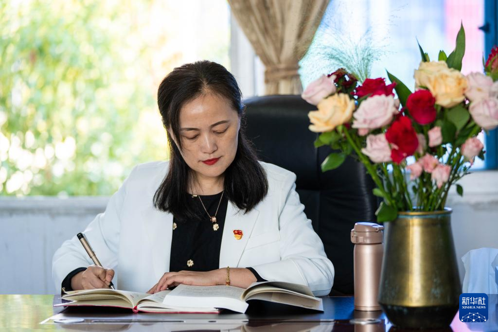 10月18日,常德市桃源特殊教育学校校长彭敏在办公室整理笔记。