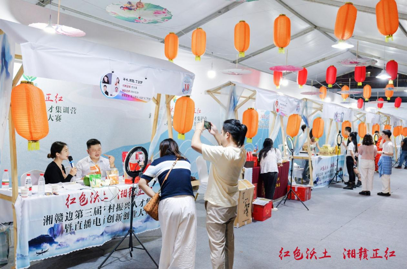 今年9月,湘赣边第三届乡村振兴人才集训营暨直播电商人才创新创业大赛在攸州公园文化广场火热进行。来自湘赣两省9个市州、27个县市区的150余家企业和300余名乡村振兴人才齐聚攸县,拼人气、比带货。活动以来,共组织直播带货近2000场次,线上线下累计销售湘赣边农特产品超1500万元。