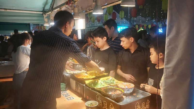 华灯初上,位于攸县文化广场前的街巷,商户颜老板正忙着为顾客打包饮品。他家的柠檬水深受消费者喜爱,摊位中还专门设置了自助取餐点,由顾客自觉付款,随时取餐。
