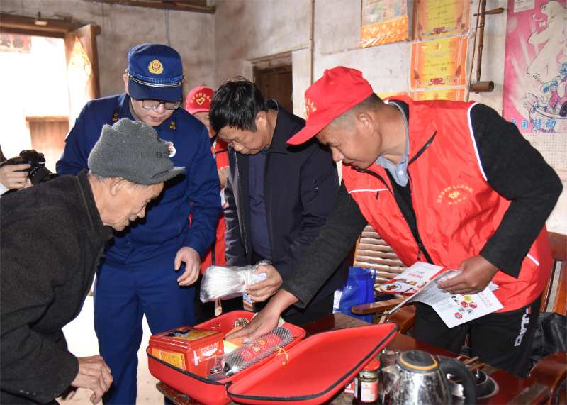 近日,宜章县好人协会消防志愿服务队深入农村敲门入户开展冬日送温暖志愿服务活动,为高龄独居老人筑起一道“防火墙”。