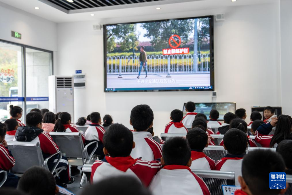 12月12日,在浏阳市交通安全宣传教育实践基地,学生在观看少年儿童交通安全警示教育片。新华社记者 陈思汗 摄