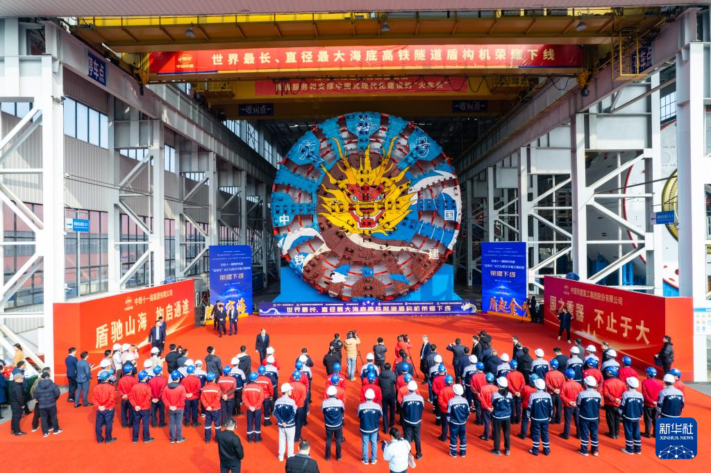2024年1月10日,超大直径盾构机“定海号”在铁建重工长沙第一产业园顺利下线。新华社记者 陈思汗 摄