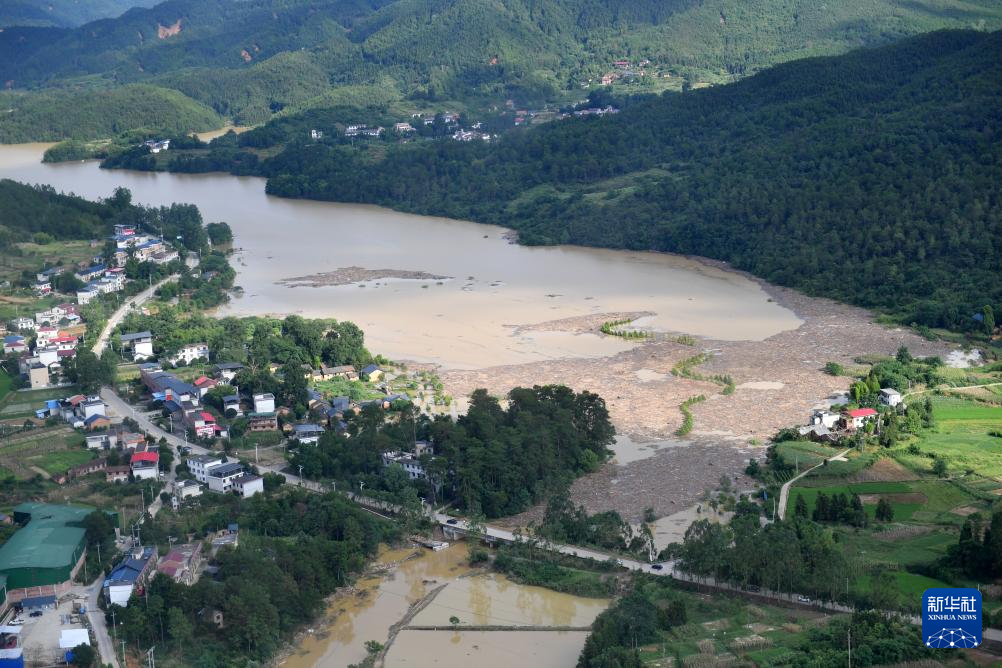 这是从直升机上拍摄的资兴市部分乡镇受灾地点(7月29日摄)。