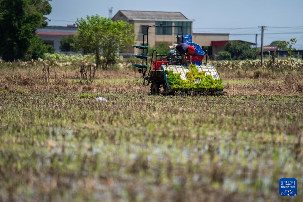 8月5日,在湖南湘潭县河口镇莲托村,村民驾驶插秧机抢插晚稻。新华社记者 陈思汗 摄pagebreak