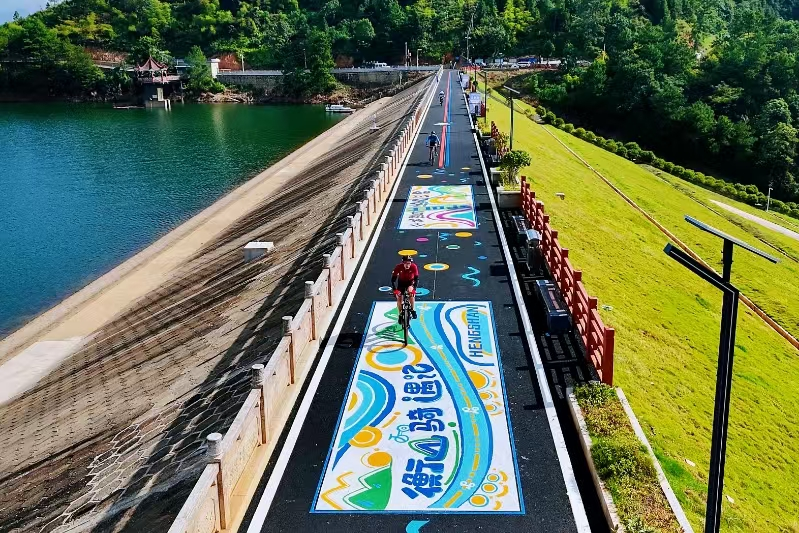 除了基础设施上“新”,主办方还在路面贴心设计了许多诸如“衡山骑遇记” “全民健身活力运动”等个性彩绘涂装,扮靓赛道装点沿途风景。