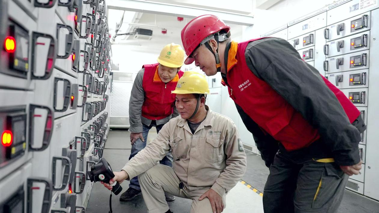 国网湖南电力东方红共产党员服务队在岳阳市奥体中心高压配电房开展巡视检查(许苗 摄)