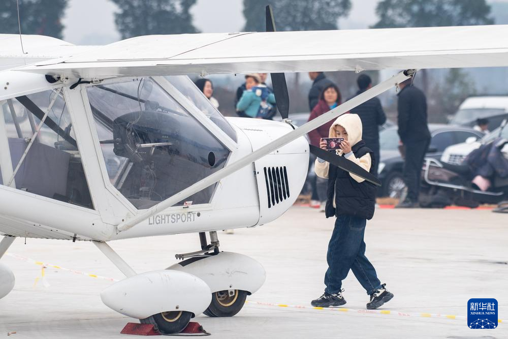 1月18日,在柳叶湖龙翔低空飞行营地,游客在拍摄展示的飞行器。 新华社记者 陈思汗 摄 当日,湘西北地区首个低空飞行营地湖南省常德市柳叶湖龙翔低空飞行营地正式开门营业。营地涵盖了飞行营地建设、飞行员驾照培训、观光飞行、飞机维修等多项业务。