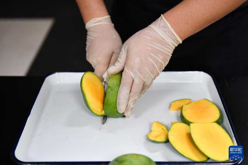 5月28日,长沙黄花机场海关关员对芒果进行剖果检查。新华社记者 陈振海 摄pagebreak