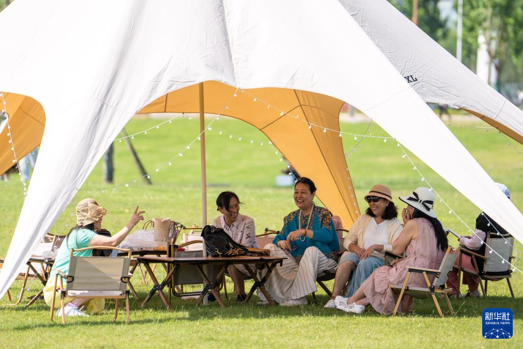 5月30日,游客在长沙大泽湖近自然湿地公园露营。新华社记者 陈思汗 摄pagebreak