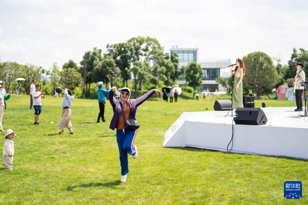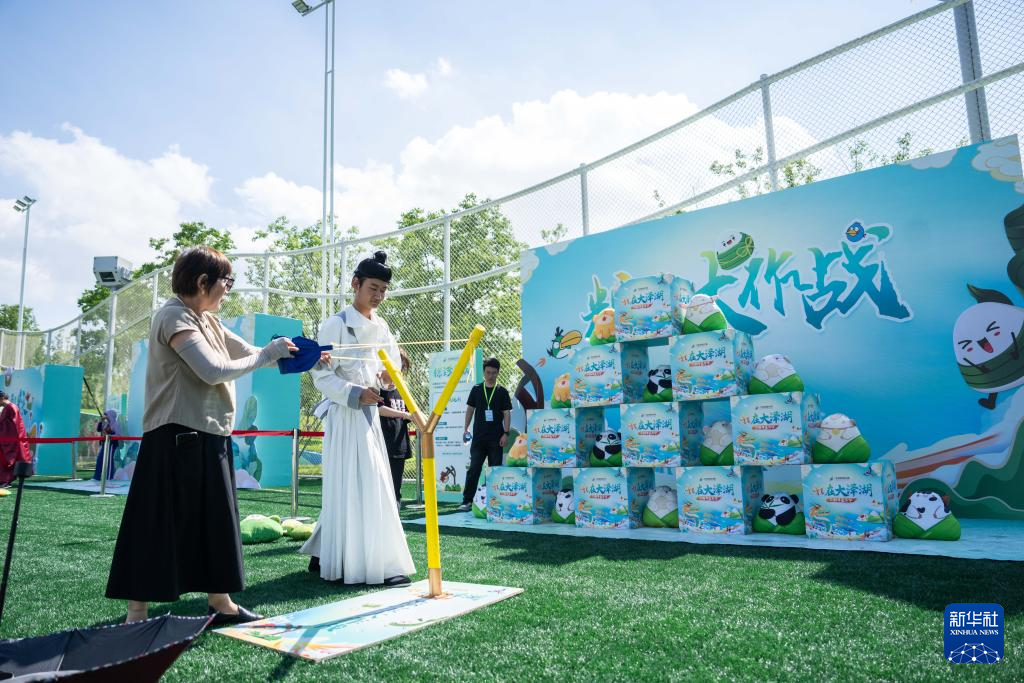 5月30日,在长沙大泽湖近自然湿地公园,游客参与端午趣味游戏活动。新华社记者 陈思汗 摄pagebreak