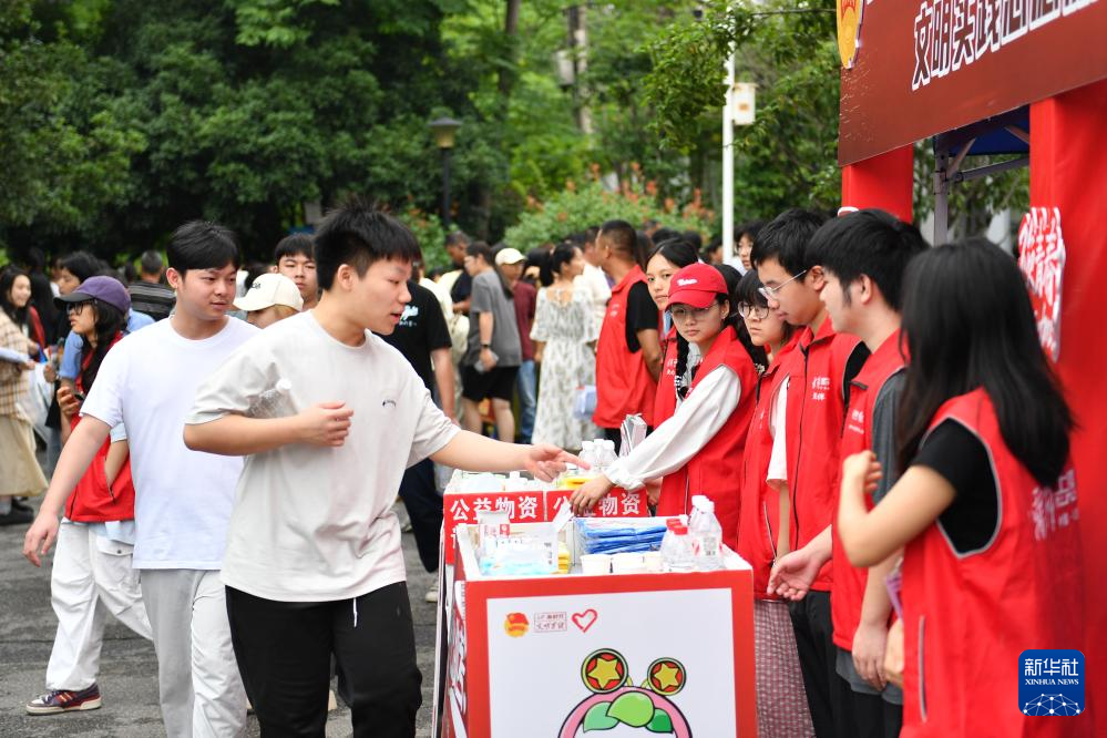 2025年全国高考期间,湖南省长沙市天心区组织青年志愿者,在多个考点为考生和家长提供便利服务。