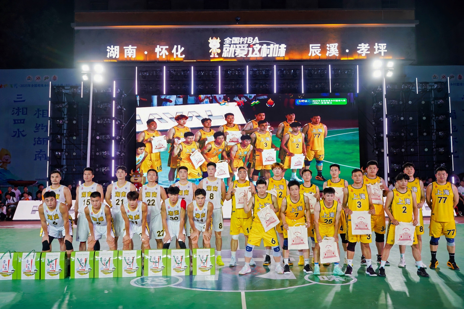 8月20日晚,大地流彩·2025年全国和美乡村篮球大赛(村BA)南部赛区在湖南省辰溪县孝坪镇爱国村火热开赛。