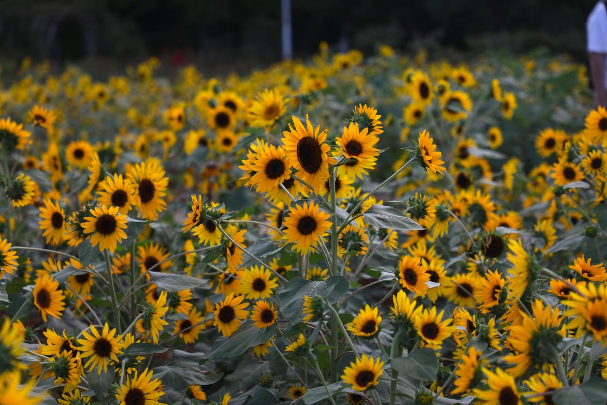 本次“秋之色”花展展出的向日葵品种包括“丰收乐”“好运多”“墨池吐金”“小星星”等共7万余株。此次展出的向日葵植株偏矮、花更密,适合亲子家庭拍照互动,无需踮脚也能沉浸花海,体验“比萌”乐趣。花期预计从9月中旬持续至10月中旬,目前部分品种已陆续开放。