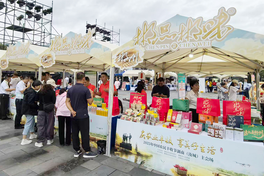 活动现场,丰富多彩的庆祝活动精彩纷呈。在沙洲村民俗广场,“郴品郴味”展台上的汝城白毛茶、临武鸭、栖凤渡鱼粉等特色农产品和美食让人流连,“土特产”变成了增收致富的“金名片”;文市村的“辣王争霸”引得众人一决高下,汝城朝天椒在味蕾上的笔画也勾勒出特色农业产业的发展活力;主会场舞台上,农民代表手持丰收果实,或唱或舞铺展开鱼米之乡的丰收图景……
