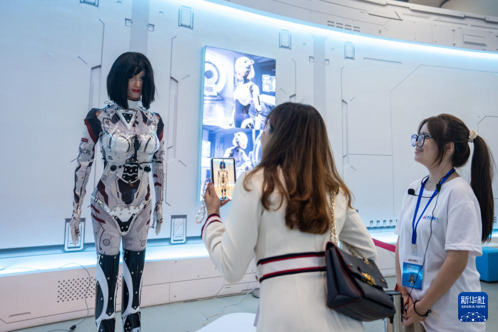 9月24日,在株洲国际会展中心,观众在观看一台人形机器人。新华社记者 陈思汗 摄pagebreak
