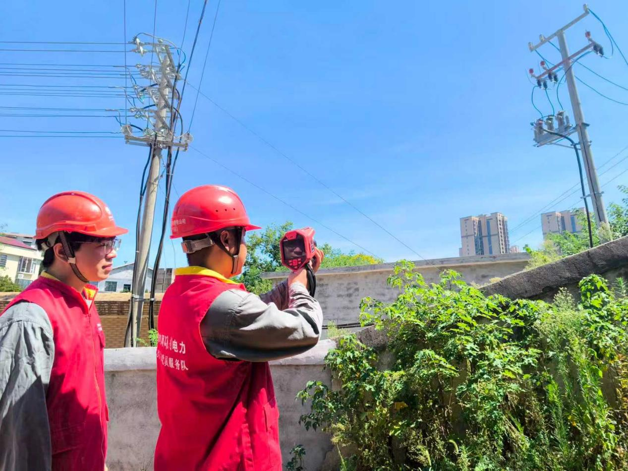 工作人员对配网线路开展巡视测温。刘瑶轩 摄