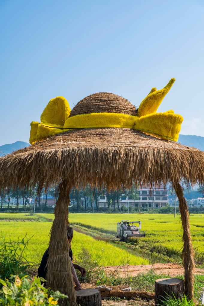 10月11日,湖南省娄底市双峰县荷叶镇清泉村农民驾驶收割机收获晚稻。新华社发(李建新摄)pagebreak