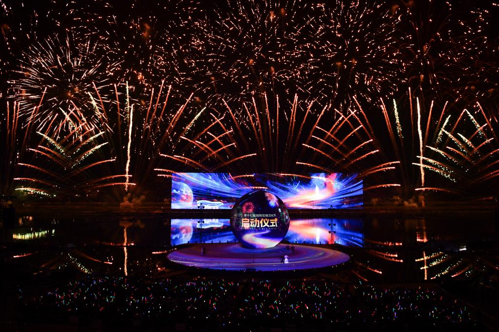 10月24日,第十七届浏阳花炮文化节开幕式暨烟花艺术汇演在湖南省浏阳市举行。据悉,本届花炮文化节结合全息投影等技术,为观众带来沉浸式烟花表演。pagebreak