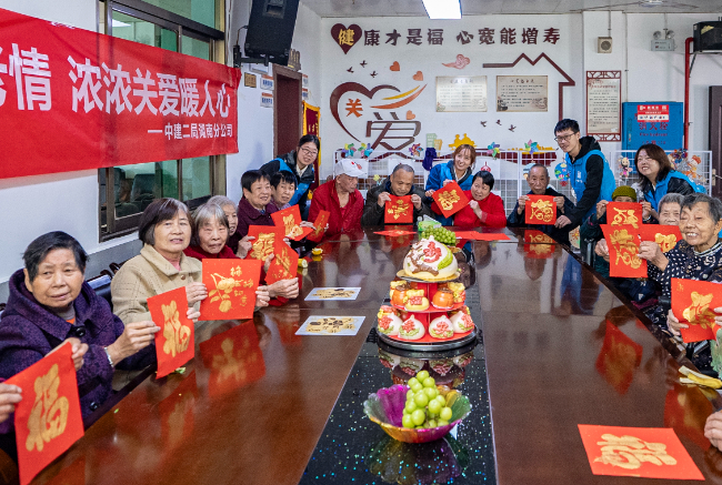 10月27日,中建二局湖南分公司志愿者走进望城区星城敬老院,开展“九九重阳敬老情 浓浓关爱暖人心”主题慰问活动。据介绍,星城敬老院设48张床位,以保障特殊困难老人养老为主。志愿者们为老人送上大米、食用油、水果等生活物资,老人们兴致勃勃地参与了“福字拓印”活动,并与志愿者们一同品尝象征健康长寿的寿桃花馍,闲话家常,现场氛围暖意融融。(周芸芸)