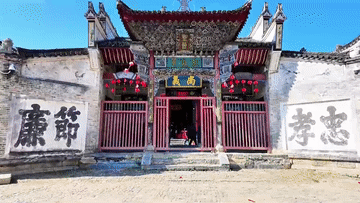 11月24日,人们在郴州汝城县金山村一处古祠堂内(无人机照片)。其中,