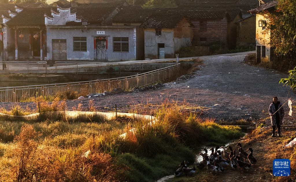 11月24日,郴州市汝城县金山村村民在放鸭子。新华社记者 刘莲芬 摄pagebreak
